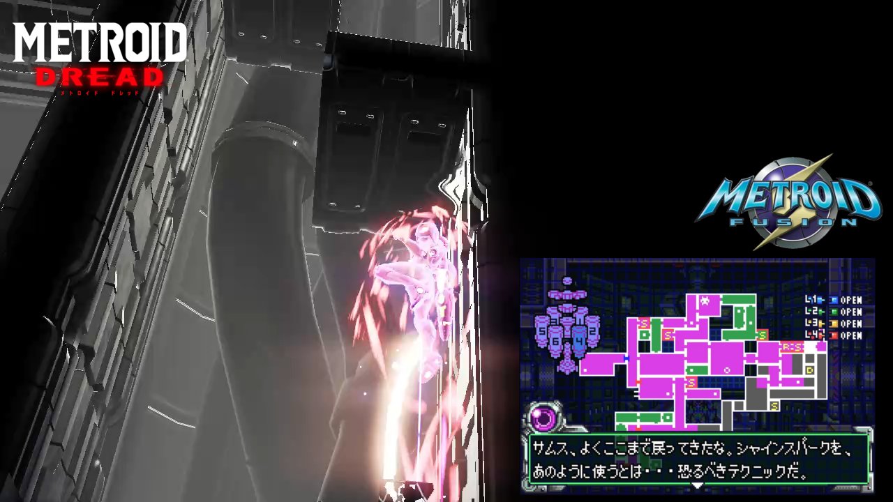 ――さて、ここは、“廃棄された無人研究所”という感じであるが、SF作品の恒例行事として、機械のシステムは生きている。現実では毎日メンテナンスしてても壊れるのにな!!! それはそうと、ここでは「X」が再登場した。『フュージョン』で初登場した寄生生物であるが、“寄生=寄って生きる”とは名ばかりで、相手を殺害したあげく、そのコピーを無限に生成するという、悪逆非道な生物だ。その際は、遺伝的な特徴のみならず、知恵や能力まで真似ることができ、『フュージョン』では、最強状態のサムスをコピーした「SA-X」という敵が、大きなライバルキャラクターとして登場した。ちなみに、生物兵器としての「メトロイド」は、このXを駆除するために作られた…という設定も、作品展開のいずれかの段階で行われたらしい。