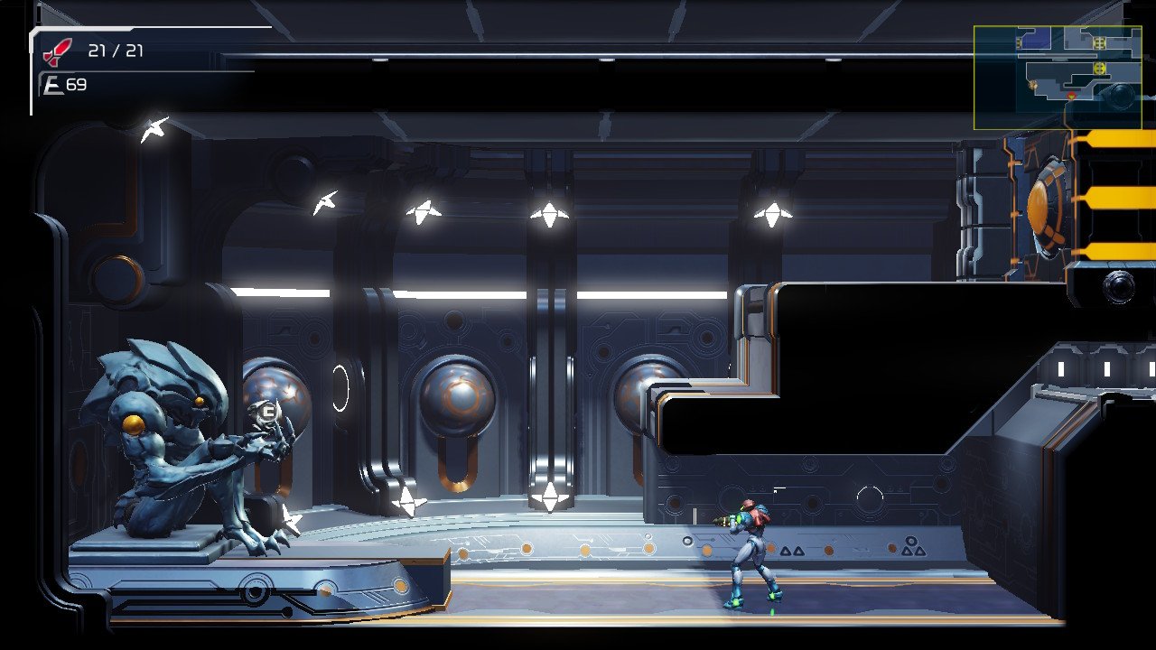 ――なお、オープニングで、「7体のE.M.M.I.が派遣された」という文言を読んだときは、「あ、これが今回のボス敵になるやつだ…」と、ロックマンX的な気分をいだいたが、ボスとして戦う相手とE.M.M.I.は、あくまで別勢力ということのようだ。