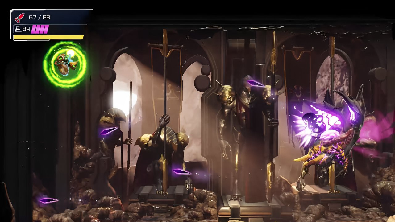 ドロギーガの撃破後は、森林エリアと言える「ガヴォラン」へと足を進める。この辺りから、雑魚敵の硬さが異様になってきて、撃破にはミサイルが10発近く必要になることすら存在する。その窮屈感を解消するためか、「スーパーミサイル」が手に入るが、『フュージョン』と同じく、“通常ミサイルを置き換える”という形式であるためか、大して強くなった気がしない。抜本的に戦闘環境が変わるのは、もう少し後の「アイスミサイル」の登場まで待つ必要がある。スーパーミサイルが期待外れだっただけに、逆に「アイスミサイル」の強さが際立つのだ。