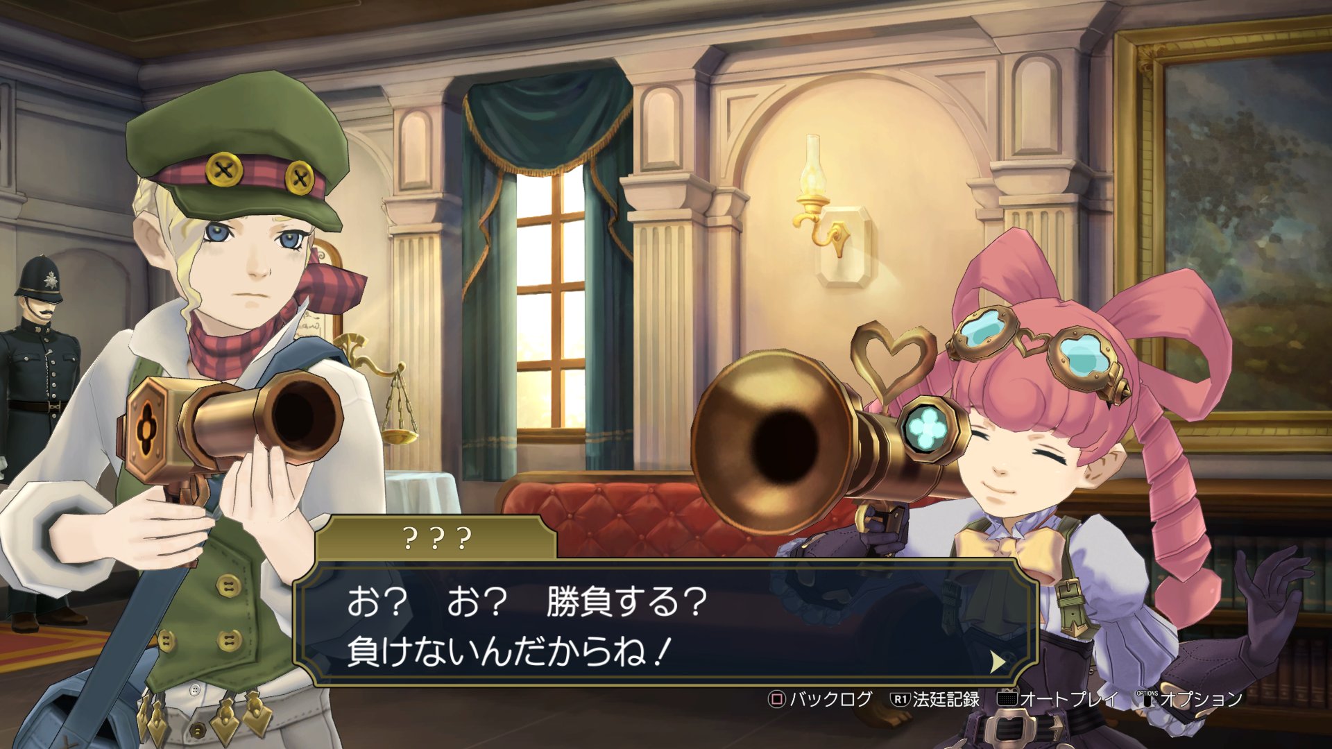 さて。今回の第3話は、変則的であるが、「探偵パート」→「法廷パート」という、逆転裁判の基本的な流れに準じており、まずはロンドンの首席判事に会うところから話が始まる。なお、「判事」という職業に見覚えがなかったので調べてみたが、ほぼイコールで「裁判官」と捉えて良いようだ。明らかに黒幕感のある見た目であり、今作は予想の裏のそのまた裏を行く展開が多いので、普通に、この人がラスボスなのであろう。