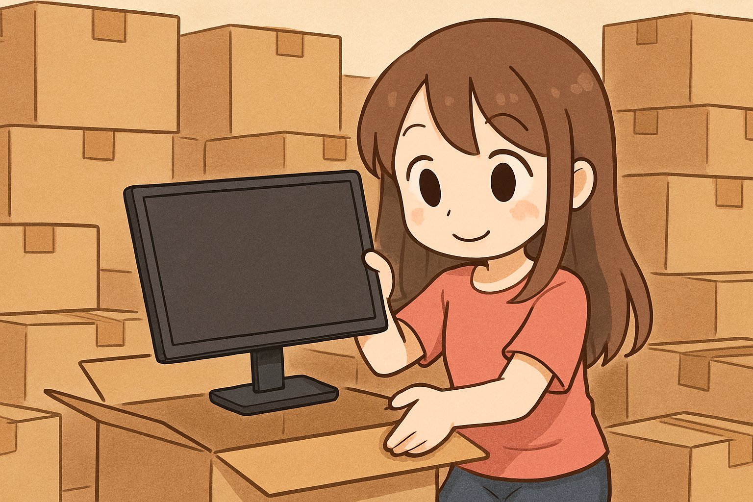 というわけで。私は、「職場の2画面化プロジェクト」について、是非やるべきと思っていた。なにせ、倉庫には、約80台の未開封ディスプレイが積まれているのだ。これをそのまま積んでいても、何の役にも立たないが、現場に出て使われれば、若くてかわいい女性職員さんや、賢くて信頼できるが機械はちょっと苦手なエリート社員さんたちを助けられるし、それに、機械さんも使われたほうが嬉しいだろう。私はパソコンオタクだから、皆にPCを気持ちよく使ってほしいのだ。