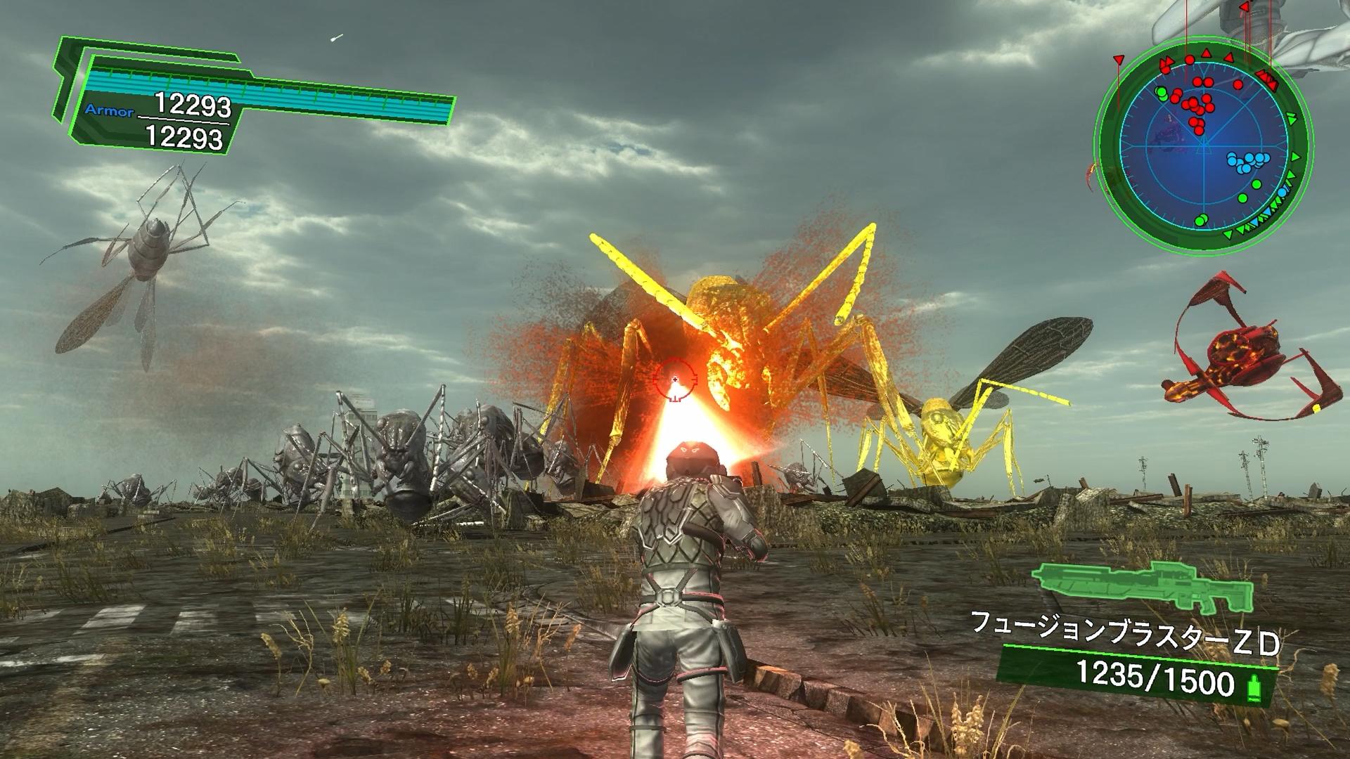 ――というわけで。この戦法で、『4』の時はクリア可能だったのだが、『4.1』でも、まったく同じ作戦で突破することができた。とにかく、レンジャーの機動力の低さや、スタンピードXMの低火力といった弱点を、ウイングダイバーが補ってくれ、そしてそれを回復アイテムで長もちさせるという構成が素晴らしい。明確な役割分担が行われており、その噛み合わせが良すぎるために、「プレイヤーの武器が超広範囲の爆発物のみ」なんて極端な編成でも、クリア可能となったのだ。やれ、シューティングゲームというと、“エイム”=照準の上手さが取り沙汰されることが多いが、今回のように、RPG的な楽しみ方ができるのも、地球防衛軍の良いところだ。いやー、昔の戦法であっても、良いものは残っている!