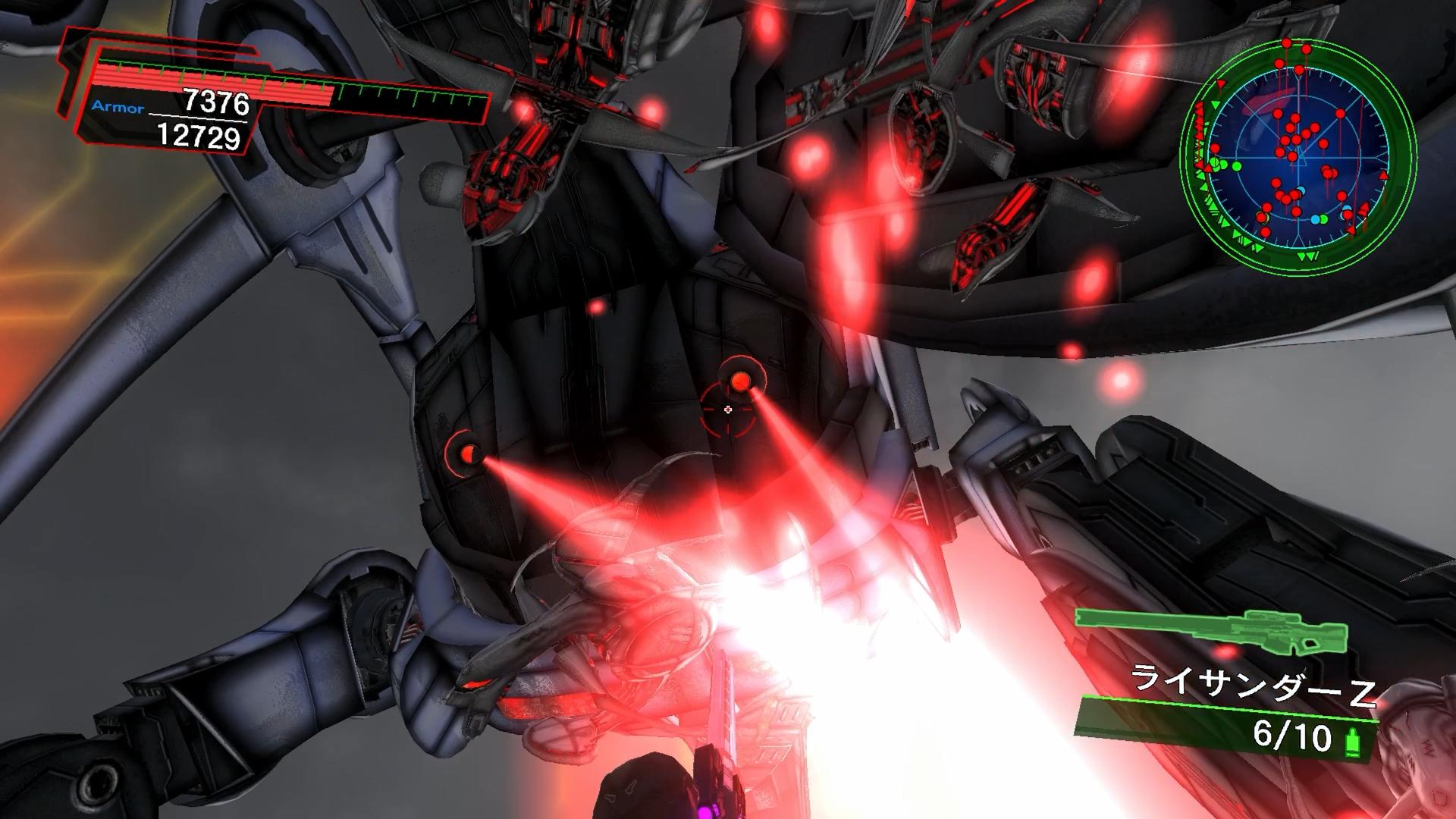 そうして、仲間を集めつつヘクトルを片付けたら、次は、飛行戦力を削りながら、四足要塞を狙っていくのだが、こいつがなかなか強い。本編での登場時は、全てフュージョンブラスターで瞬殺していたのだが、武器枠の関係でそれができないとなると、最初から動いているガトリング型のチ○コ砲台、そして体力半分程度で起動する乳首レーザー×5を削りつつ、そして投下される敵も倒しつつ…という、一進一退の戦いとなる。しかも、大量の敵が出てくるくせに、フィールドが広く、アイテム落下数が上限に達してしまうためか、途中から敵がアイテムを落とさなくなる。そのため、HP回復まで難しいという始末だ。派手な見た目に反して、実際は簡単…と見せかけた、難関ミッションである。