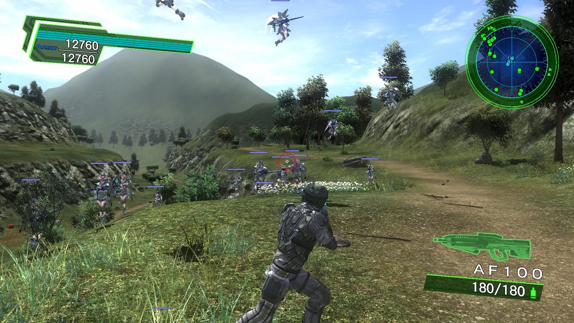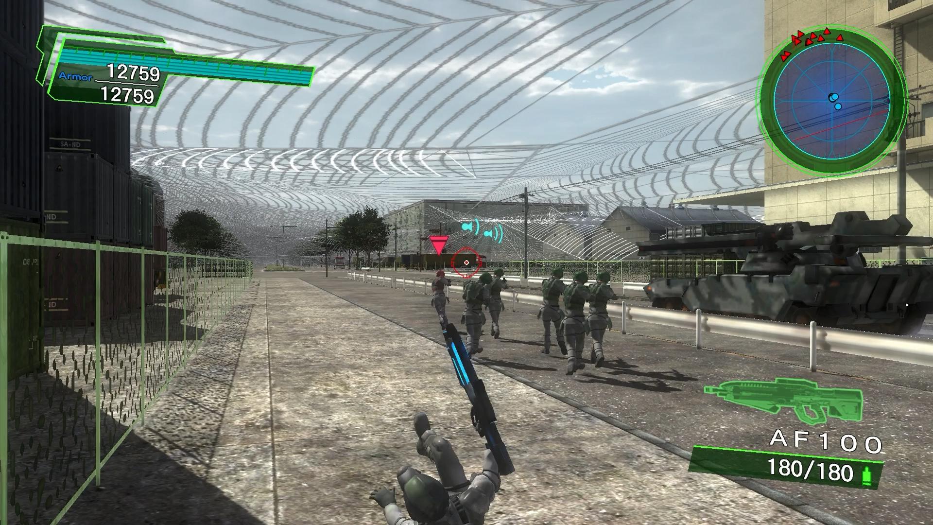 では、INFERNOはどうだったのかと言うと、緑蟻巣の登場に間に合わず、大量の敵を拡散させてしまった。…が、なぜかクリアができた。今回は武器枠の関係上、火炎放射器を持っていけなかったのだが、戦闘区域がそれなりに広く、プレイヤーだけに緑蟻が殺到することがない。また、味方兵士の中でも、レールガン戦車が尋常ではない強さを誇り、バツンバツンと敵を倒していってくれるのだ。