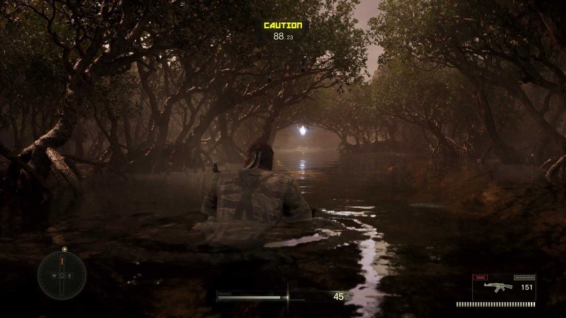 ザ・ペインの居た洞窟を超えると、次は、マングローブの水場へと進む。ここは、MGS3を象徴するネタアイテムである「ワニキャップ」の、ほぼ唯一と言える活躍場面である。しかし、残念ながら、私はワニキャップを取り忘れていた。