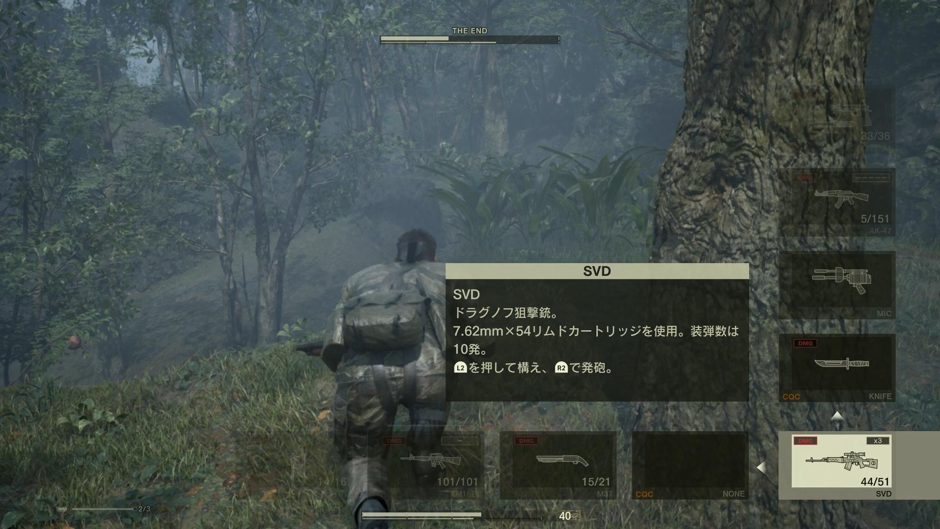 ENDさせられる。また、さすがに時間設定を使うのはチートという人も、序盤のマングローブの森での狙撃キルを適用可能だ(【日記:2026/1/14】)。とまあ、こんな感じで。2004年の発売当時も、既にインターネットは十分に普及していたため、ジ・エンド戦をまるごと飛ばしてしまうというのは、公然の裏技となっていた。