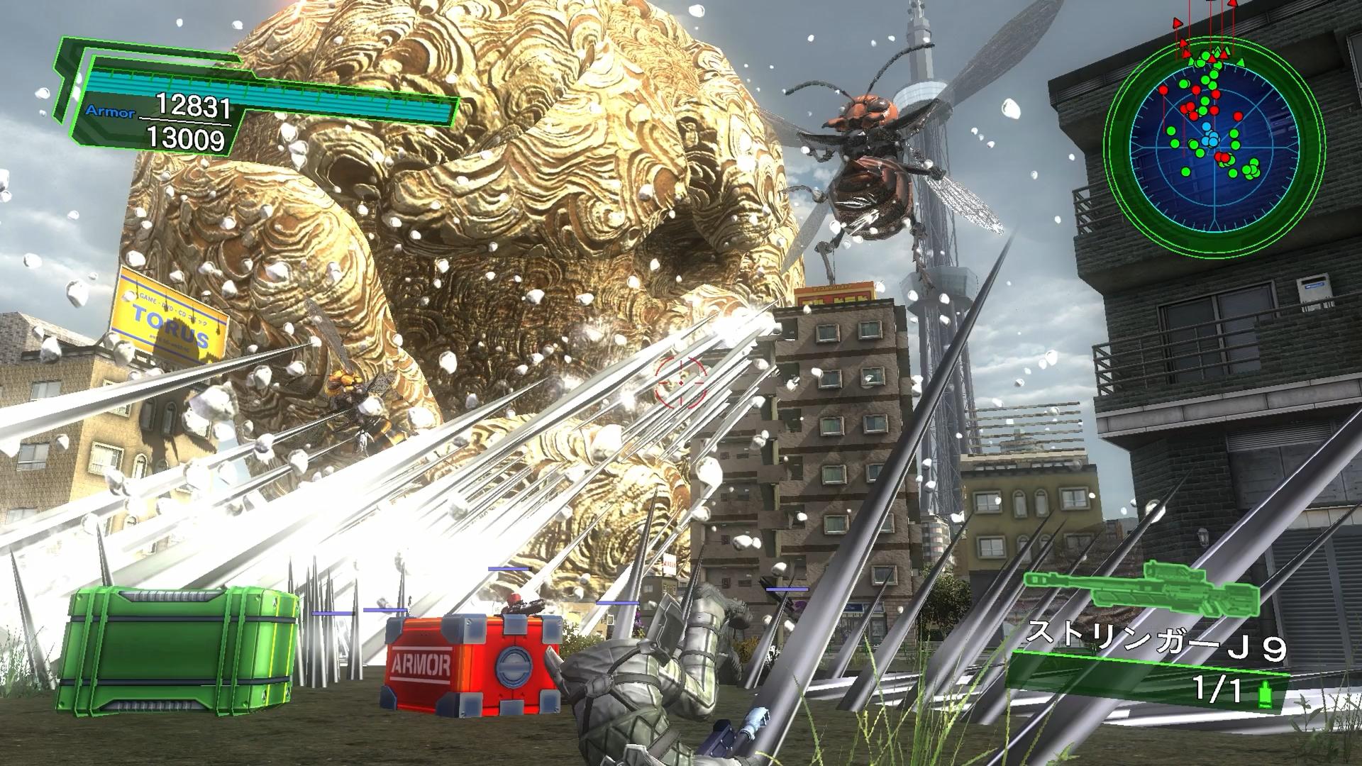 さて、まず、第1ボスにして、『4』で私を震え上がらせた金女王×2は、『4.1』でも健在だ。しかしながら、建物に引っかかるなどして、2体同時に登場せず、接近がかなり遅れることがある。この隙にストリンガーでいくら削れるかは、かなり重要なポイントだ。まあ、最終的にはフュージョンブラスターを取り出すことになるだろうが、その弾数をできるだけ節約していきたい。逆に、2体が最速タイミングで来訪し、同時討伐を強いられるようになると、なかなかきついであろう。
