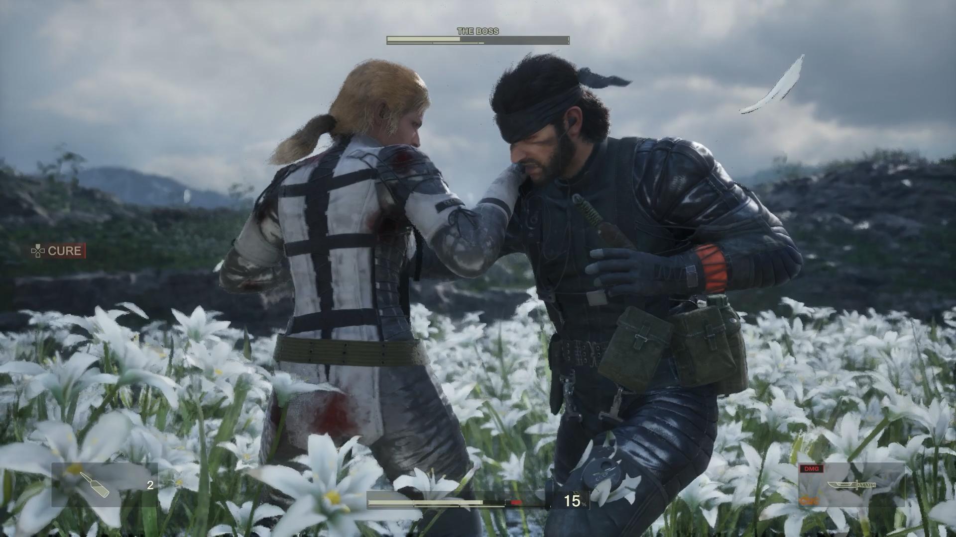 ――そして、本作の世界観上においても、CQCはザ・ボスが作り上げたものであり、一子相伝(実子ではなく、弟子)でスネークに伝えられている。その2人の戦いがCQC対決となるのは、ストーリー上でも必然というわけだ。白い花の大量に咲いた美しいフィールドも、憎しみをぶつけ合うのではなく、最後の稽古をスネークにつけてやる、という戦いであることが伝わってくるものだ。