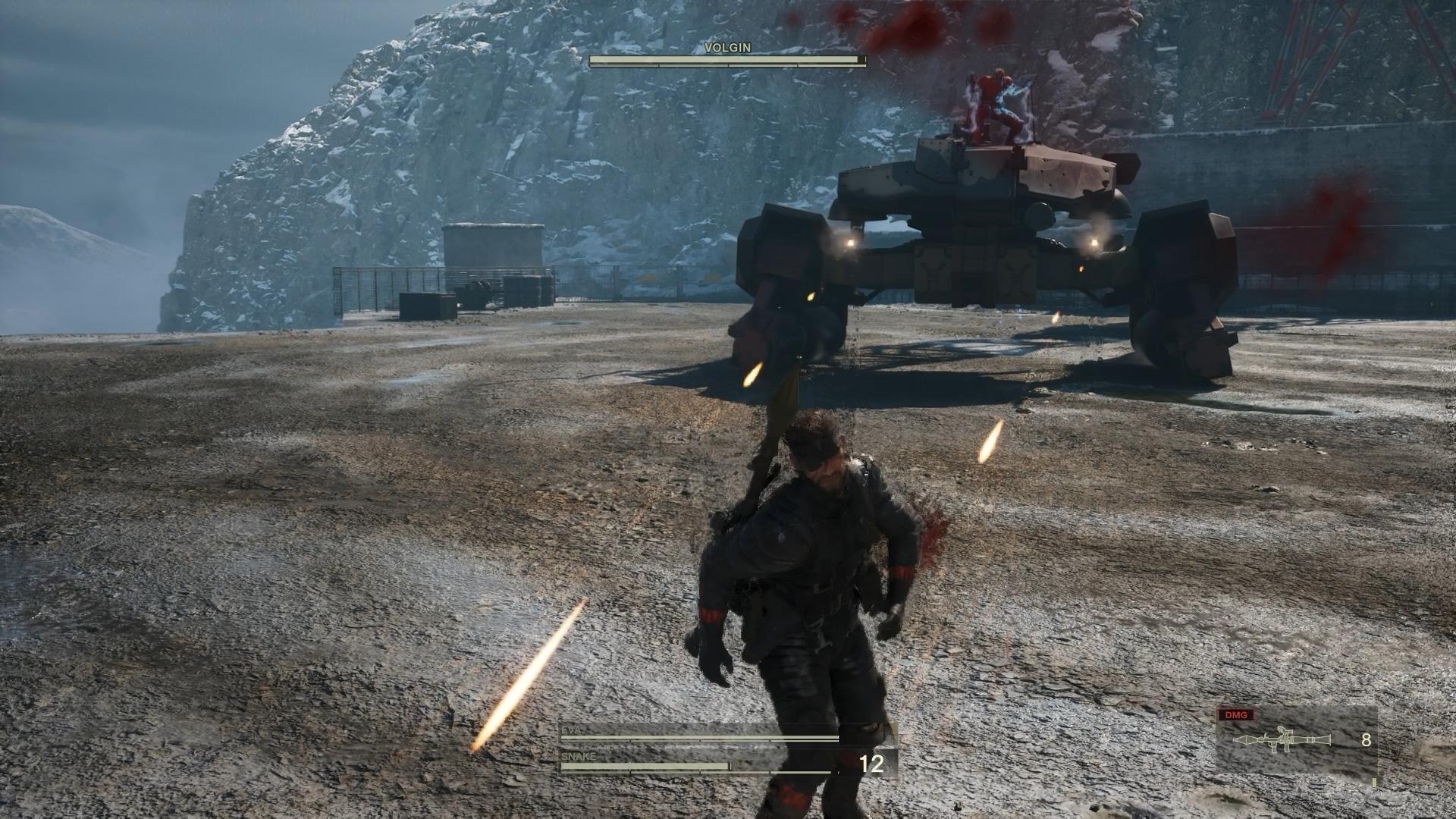 「シャゴホッド(SHAGOHOD)」と戦う。今作における“メタルギア(兵器)”枠であり、大ボスと言える存在なのだが…聞きたいのだが、コイツに負けたことがある人って居る? 私の場合、全バージョン・全難易度・全プレイを通して、一度も負けた覚えが無い。だって、弱すぎるのである。攻略法は、車輪の部分をRPGで撃って足止めし、そして第1段階では背面を、第2段階では正面からで良いのでヴォルギンを撃てば良い。せっかく2つの段階が用意されているのに、プレイ感覚が変わらず、ワンパターンで勝てるのだ。ちなみに、射撃方法は、武器の付け外しによるクイックリロードを活用し、高速でRPGを連打するというものだ。地球防衛軍でやれ。