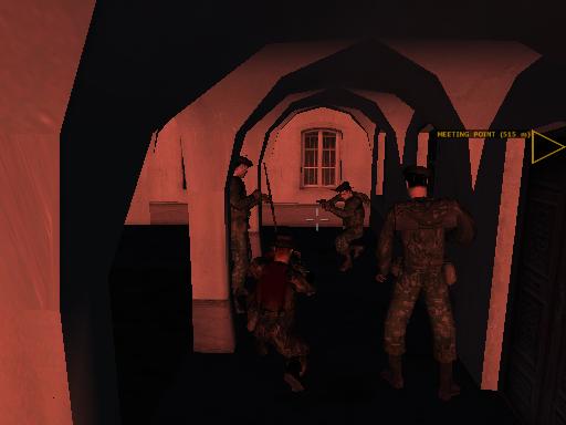 まずは敵巡回兵の隙を突いて一気に侵入し、会議を盗み聞きする。