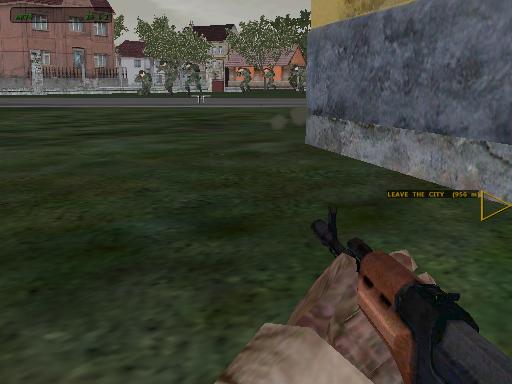 まず最初に敵兵を一人車でひき殺すか、緑色の服を着た人が乗っている車から武器を奪い、物陰をうまく利用して敵を殲滅する。