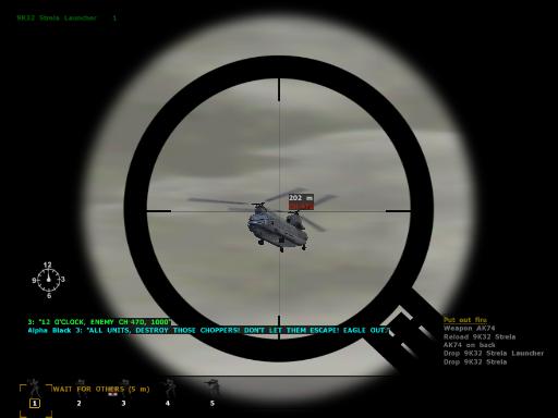 まずはAAランチャーをうまく使い、チヌークを2機打ち落とす。空中で完全破壊まで持っていけるように。