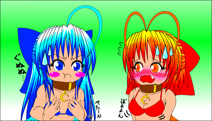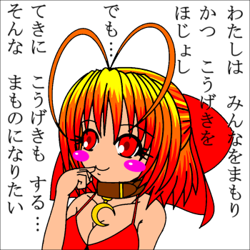 このあたりの作画はちと気合入れましたが、実はいうとこのぐらいのほうが本当は楽です。くびれとか太ももとかの曲線美を描くのが好きなんですよ。相変わらずデフォルメが苦手です…。