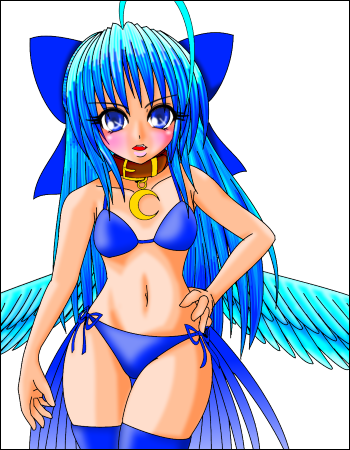 ルナティック三姉妹の長女。 好戦的で熱血な性格をしており、強引なぐらい元気いっぱいに妹たちを引っ張っていく。妹二人のことはとっても大事。 しかし直情的な性格のわりに攻撃力が低いことが自他ともに認める欠点であり、それを補うために人知れず剣技に磨きをかけるべく特訓している努力家である。 相手の弱点を突いて眠らせたり、マヒさせたり、特定の種族に対しては威力を高めたりと、膂力こそないものの攻撃に対しては多芸。攻撃力以外は平均以上の能力を持つ。レイピアを扱うのが得意。 また、彼女の特長は大器晩成であることにあり、陰ながら努力を怠らなかった彼女はある日から一気にその実を結ぶこととなる。その急成長ぶりこそが彼女の真骨頂である。 ホークブリザードの特性として、氷属性を完全無効化し、逆に苦手そうな炎属性もわずかだが耐える気丈さを持つ。ただしイオ系は大の苦手。ステータス異常も得意ではないが、姉妹の中では少しだけ耐性を持つ。 バストサイズはユエとは少ししか違わないと言い張るが、実は末妹〔まつまい〕のトモにすら負けていて、毎日牛乳をがぶ飲みしている。そのせいか、脚が太い(?)。長く伸ばしている髪は妹たちからも羨ましがられているので、そこには自信あり。 |