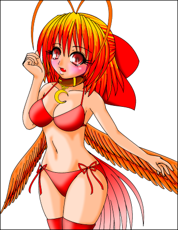 ルナティック三姉妹の次女。 楽天的な性格で、物事をあまり難しく考えていない。良くも悪くも、人を疑うことを知らないまっすぐな性格である。姉、妹揃って仲良し。 礼儀正しく柔順でおとなしいが、生まれ持った高い攻撃力は娘たちの中でも擢んでており、立ちふさがる魔物たちを圧倒的攻撃力で蹴散らさんとする能力を秘めている。その力を生かして、自分の身長よりも長く巨大な剣をやすやすと使いこなす。 ただし真っ正直でナイーブな性格が災いしてか、正面からの単純な殴り合いなら負けないが、搦手を加えられると弱く、ステータス異常をもたらす敵との長期戦は苦手。 また序盤の体力は姉妹の中でもやや劣っており、集中攻撃を受けるとあっさりピンチになっちゃうことも。姉妹で力を合わせてフォローし合ってこそ、彼女の剛力は輝く。 ひくいどりの特性として、炎属性をほぼ無効化し、姉妹が総じて苦手とするイオ系も比較的耐える。その代わり氷属性には弱く、鳥系にしては珍しく風属性も苦手。 豊満な体つきは三姉妹の中でも随一だが、姉に気を使っている…が、それがルナを余計に傷つけていることには気づいていない。ただ、悪意はないことをルナもわかっているので、仲はとても良い。 |