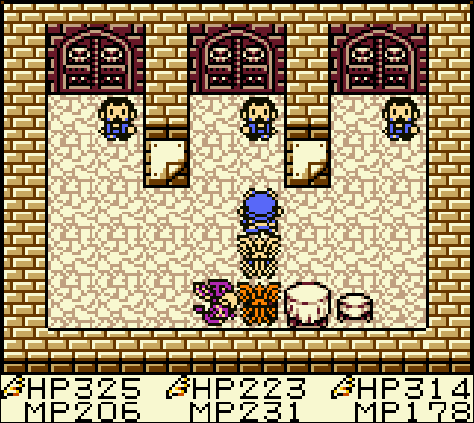 こいつは『マホトーン』、『ラリホーマ』などを使いつつ通常攻撃でダメージを与えてくる。呪文は封じられても意味ないので問題なし。娘たちは睡眠に弱いので『ラリホーマ』で眠ったりもするが、敵は通常攻撃しか使ってこない。その通常攻撃も30程度でダメージを抑えられているので致命傷にはならない。