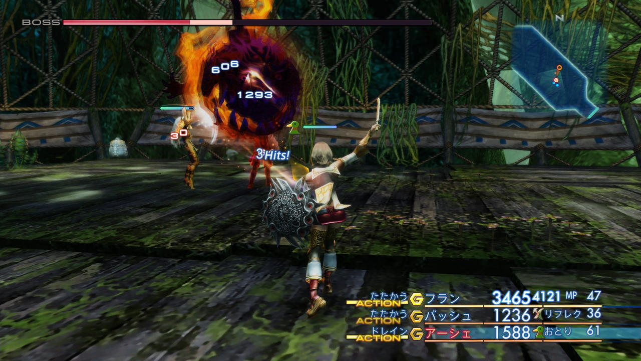 ――そんな感じで、何度か「治癒」により回復をされてしまったりもしたが、無事にボムキングを撃破することに成功をした。うむ。手動操作を許可するのならば、敵にドンムブを掛けて射程から出るという戦法は実に簡単に行えるのであるが、そうではなく、ガンビットだけでそれを達成する。個人的には、そういうところにこそFF12としての面白みを感じるのだ。それを再確認できるバトルであった。