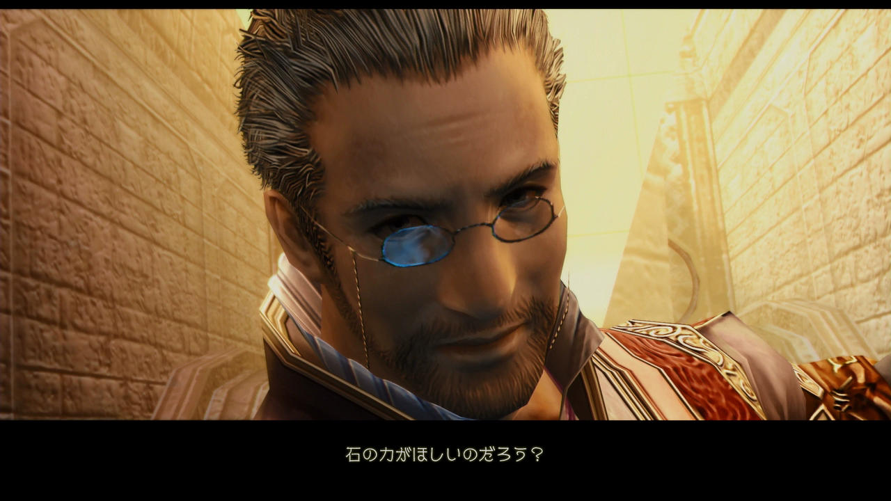 そんなわけで、まずはツイッタ大草原へと飛び、ストーリー順路に戻ってソーヘン地下宮殿への門をくぐる。なお、ここの会話イベントで、全編3回目の「“お前”はやめて」が出現する。このセリフ、ご存じの通りヴァンからの「お前」という無作法な呼び名に対するアーシェの反論なのであるが、回を追うごとに物腰が柔らかくなっていき、アーシェからその他のメンバーへの融和を表していくものだとされている。しかし、残念ながら私には、この時点においても冷たくあしらっているようにしか聞こえないのである。グラフィックが向上したHD版ならとも思ったが、これといった表情は付けられていなかった。その他のシーンでは、確かにこの辺りからアーシェから同行者たちへの信頼を示すようなシーンが増えるのは間違いないのであるが…。