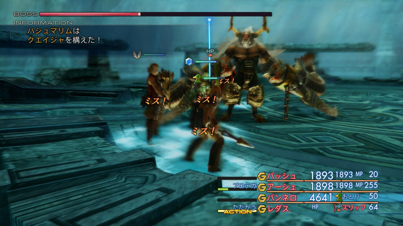 …さて。今回の非常に大きな変更点として、INT/PS4版のハシュマリムが通常攻撃CT0+回避無視をバトル開幕から得るというオメガmk.XII級のぶっ壊れボスに変貌したのであるが、何故か全く強くない。INT版以降は味方側の戦力が上がったからなのか、こちらがしっかりと対策を練ったからなのか、はたまた元が桁外れに弱く強化してやっと他に並ぶくらいの強さになったのか…。ちなみに、これは良いことだが、「絶対防御」も削除されている。