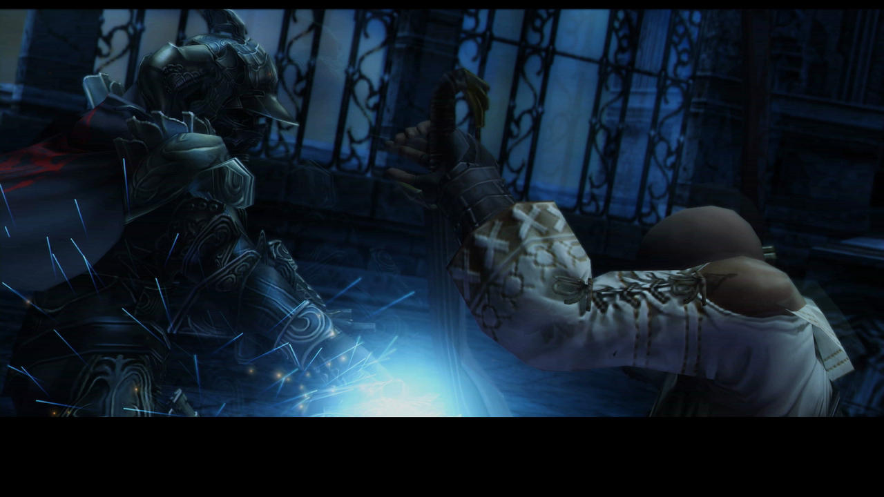 ――その後、シドのHPを50%にまで削ると、敵はファムフリートを召喚し、2体で戦いを仕掛けてくる。当然ながら開幕でいきなり全員が混乱させられたりはしない。この状態では、シドはファムフリートに「プロテス」「シェル」「ヘイスト」の3種類を高い頻度で使いつつ、通常攻撃と「S85式炸裂魔砲」で攻撃を仕掛けてくる。そしてファムフリートは、通常攻撃と「蒼の砲撃」「ウォタジャ」を使いつつ、HP<50%で「回避無視」「被ダメージカット」を、HP<20%で「瀕死攻撃力UP」を得る。ちなみにファムフリートに関しても、魔力が28→23と下がっているほか、「ウォタジャ」の威力数値も130→110と低下している。スタッフはイヴァリースでの召喚獣を含む2連戦に何か嫌な思い出でも有ったのだろうか?
