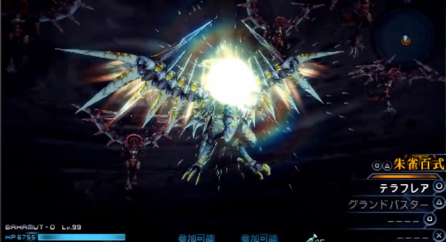 「暗黒の氷原」でシンリュウ・ホシヒメとの戦いです。ホシヒメと戦っても勝ち目はありません。全滅してバハムート零式で戦います。バハムート零式は絶対に倒されないので適当に攻撃して、最後にテラフレアでトドメを刺せば勝てます。