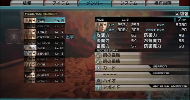 | アクセサリ | 武器 | コマンド | 防御コマンド |