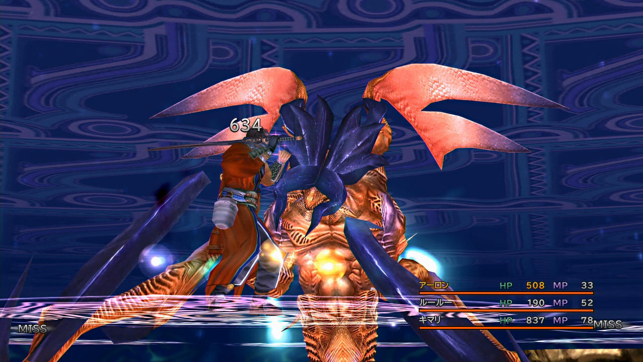 …なお、ユウナレスカ撃破後の「魔天」では、忘れずに奥の階段を上り下りし、出現した宝箱から「日輪の印」を入手しておく。この場所では、すぐ後からヘレティック・バハムートが登場するようになるため、戦闘抜きで手に入れるにはこのタイミングしか無い。やれ、INT版の目玉と言えるダーク召喚獣の追加だが、この「予告なく登場し、ストーリー攻略程度の戦力だと確実に全滅させられ、最終セーブからやり直し」という仕様は、せめてHD版を出す際にもう少し何とかできなかったのだろうか?