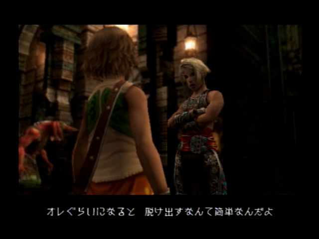 買い物を済ませたヴァンは、いよいよパンネロを探しに行きます。シナリオを進めるにはダウンタウンのダラン爺のもとを訪れればよいのですが、実はその前に普段パンネロが仕事をしていると思われるミゲロの道具ショップに顔を出すと、ヴァンの弟分といえるカイツとヴァンの会話イベントがあります。初回のプレイヤーは「物知りのダラン爺なら何か知っていそう」と思ってダラン爺のもとへ行くだろうし、周回プレイヤーはダラン爺のもとへ直行するだろうと思われることから、このイベントを知っている人はおそらくほとんどいないのではないかと思います。かくいう私も、4回目のプレイで何となく思い立って道具屋に行ってみて、見覚えがないイベントが始まったと思いました。イベントの内容は、ヴァンがパンネロの所在を聞くついでにカイツに脱獄を自慢するというもので、バルフレア達の協力あって脱獄に成功出来た上に、バルフレアに「脱獄囚だからおとなしくしていろ」と言われたそばから「オレくらいになると脱獄なんて簡単だ」というあたり、ヴァンの子供っぽさというかキャラクター性が出ているなぁと感じました。