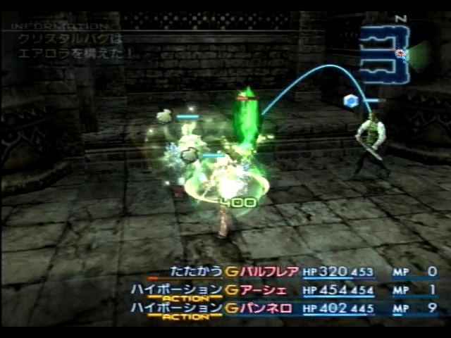 ところで、敵は「被ダメージ返し」を持っているので、敵に攻撃しているヴァンやバルフレアは当然反動ダメージを受けてしまいます。敵のHPを考慮すると、敵のHPを削る遥か前にこちらのHPが尽きてしまいます。そのためアイテムでHPを回復する必要があるのですが、何も考えずに戦えばハイポーションを大量に消費する事になり、今までアタリ疲れてきた私にとっては物量の問題が非常に大きくのしかかります。ところがこの問題は、ラーサーを正真正銘のハイポ皇子にすることで解決できます。