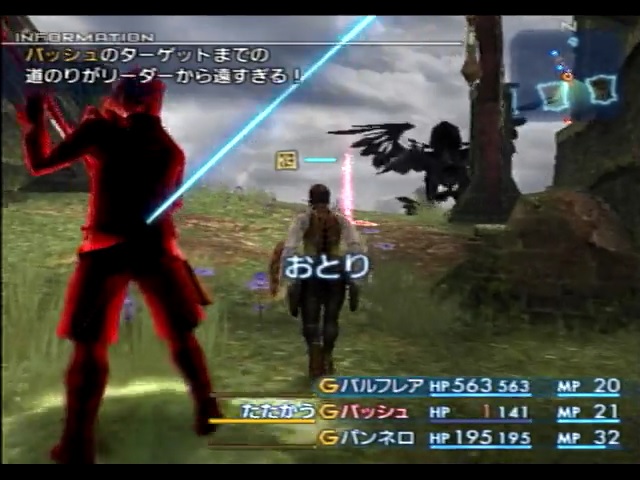 ――リンドヴルム相手でも、これまで述べてきたことに気をつければ、ヴィラールの時と同じように連撃主体で戦うことができます。戦闘メンバーも、ヴィラール戦と同様にバルフレア&バッシュ&パンネロで挑みます。役割も一緒であり、バルフレアは前述の装備で敵の攻撃に耐えつつヘイトコントロールを行う盾役、バッシュがエアリアルを携え超瀕死+バーサクで連撃を狙う攻撃役、パンネロが2人をサポートするサポート役になります。