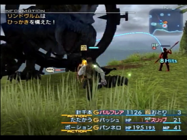 ちなみに、書く場所が見つからなかったのでここに書きますが、リンドヴルムもヴィラールと同じくくらやみ+沈黙を無効化できないので、相手の活力が高い(82)ことを利用して魔法命中率マイナス必中でくらやみ&沈黙状態にすることができます。これにより、物理攻撃や魔法攻撃の脅威を減らすことができます。実際は、バルフレアがブラインをマイナス必中で当てて、パンネロが魔力とフェイスでサイレスを当てていたりします。