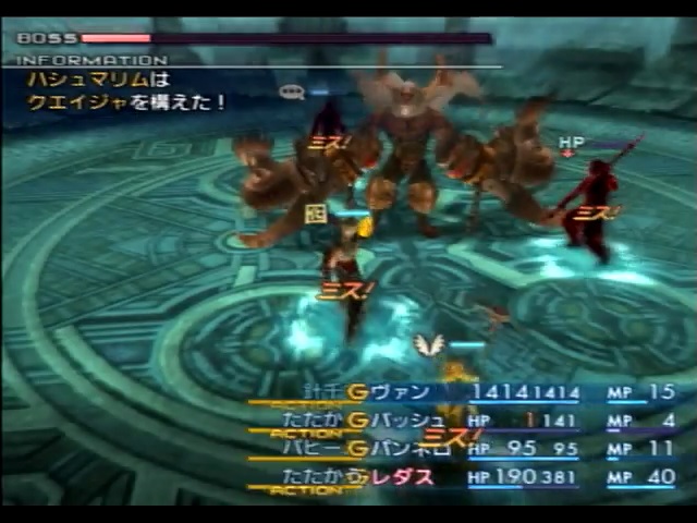 ――以上のような装備・戦法でハイドロとの戦いを行いました。前半は敵の繰り出してくる状態異常を適宜治しつつ、バルフレア達が着実にダメージを与えていきます。敵の範囲魔法によってリフレクを張っていないレダスが度々倒されてしまいますが、放置せずに蘇生させます。ちなみにここでもレダスはガンビットに反応してもらうのを目的として沈黙状態にしています。
