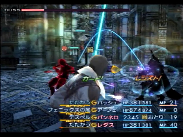バルフレアとアーシェは敵の使用する魔法攻撃で一撃で倒されてしまうので、バルフレアはルビーの指輪装備、アーシェは自身への「リフレク」で敵の魔法攻撃を反射します(敵は「リフレク貫通」を持っていません)。ここでレダスにも「リフレク」を張りたいところなのですが、ガンビット枠が足りなかったこと、アーシェのMPも足りなくなりがちなことから残念ながらレダスはリフレクなしで戦ってもらいます。
