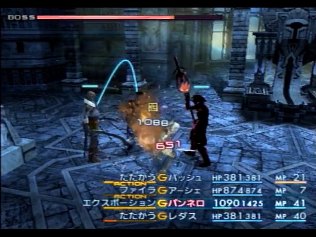 敵のHPは203800とそこそこありますが、狂戦士状態になったバルフレアの通常攻撃で2500前後、アーシェのオイル状態からの「ファイガ」で4000前後のダメージが出せるので、火力はそこまで問題にはなりません。ちなみにレダスの攻撃は狂戦士状態で700程度です。