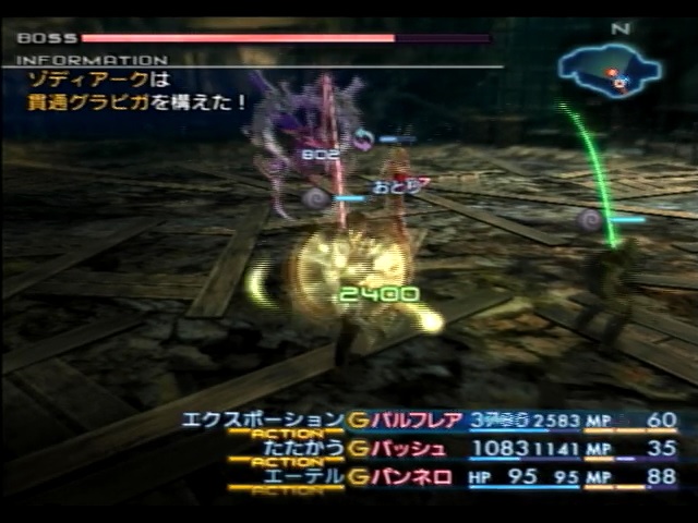 そんなこんなで、バトルメンバー3人を蘇生させたら、再びバルフレア/バッシュ/パンネロの3人でゾディアークと戦います。他の3人は本当に蘇生させることだけしか考えていないのでまともに戦うことが出来ません。以降の戦闘でも、この3人で戦い抜いていきます。