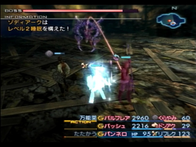 HPが80%以上のゾディアークは、「レベル2睡眠」「レベル3ドンアク」「レベル4ブレイク」を使用してこちらに状態異常を与えてきます。しかし、バトルメンバーの構成次第ではあらかじめ食らうキャラクターがわかる上に、状態異常も各種アイテムで治療することが出来るほか、そもそも低レベルクリアーでは「レベル4ブレイク」は引っかかるキャラクターがいないので完全な隙という事もあって、これらの攻撃はゾディアークの使用する攻撃の中では最も脅威度が低い攻撃と言って良いでしょう。それゆえなのか本当に戦闘の序盤にしか使用しませんが、これらの攻撃を使用しているうちはいかに以降の激しい攻撃への準備を行えるかがカギとなる事でしょう。