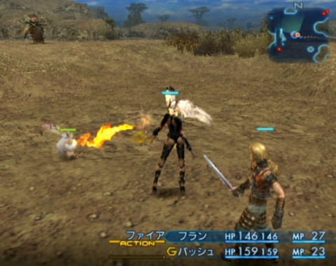 ・・・というわけで、このブッシュファイア戦は何も考えずに戦うと大量のアイテムを消費するor無理ゲーと化すことが既に分かっていたので、あらかじめ西ダルマスカ砂漠で入手しておいた「ウォータの魔片」を使い、弱点を突いて一気に倒してしまうことにした。1発で250ほどのダメージを与えられ、連続攻撃をすればすぐに相手のHP:3571を削りきることができる。まあ、「魔片の連発」というのはあまり綺麗な戦い方ではないが、それを禁止すると悲しすぎる戦いになってしまうので、ここはどうか許して欲しいものである。それに、中盤以降は普通の魔法や技も活躍してくるだろうし・・・。