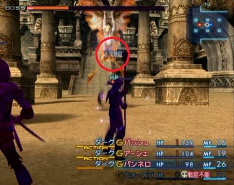・・・ちなみに、このバトルでも恒例の反省会であるが、実はFF12では「石化」というステータス異常はバトルからの消滅を意味しているため、勝手に「たたかう」を使ってしまうウォースラを戦闘不能ではなく「ブレイク」で石化させて放置していれば、他のキャラクターは何の問題無く「味方1人 -