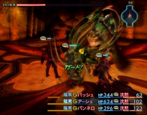 ・・・ところが、このバトルは「MPダメージ」のフィールドに包まれており、あっという間にキャラクターのMPが無くなってしまう。それだけなら回復すれば良いだけなのだが、相手が多用してくる「圧縮蜜砲」という攻撃が割り込み不能の技となっており、こちらが全く行動できないうちにMPばかり減らされてしまう。しかも、敵は「圧縮蜜砲」を連打してくるようなものなので、「エーテルでMP回復」→「エアロガで攻撃しようとするも圧縮蜜砲に割り込めない」→「MPが減ってエアロガ不発」→「再びエーテル」という悪循環がひたすらに続いてしまう。なるほど、「圧縮蜜砲」とはそういう趣旨の攻撃だったのか・・・。