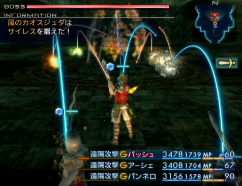 まず、開幕のカオスジュダが4体出現するパートでは、敵が計5体も出現する大混戦となるので、いかに早くカオスジュダの数を減らせるかがポイントである。カオスジュダの魔法攻撃は貧弱なのであるが、4体で放ってくるため、モーションの渋滞を引き起こしやすい。さらに、この状態のカオスは「HP消費攻撃」を利用して3000もの打撃ダメージを与えてくるため、「バブル」無しでは一撃必殺となってしまうのだが、その「バブル」が「サイレス」で封印されてしまうため、ここはできる限り速攻を仕掛けていきたい。なお、FF12の沈黙状態は戦闘不能になっても解除されないという特性がある。