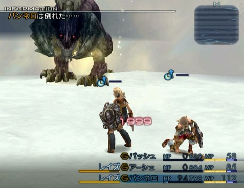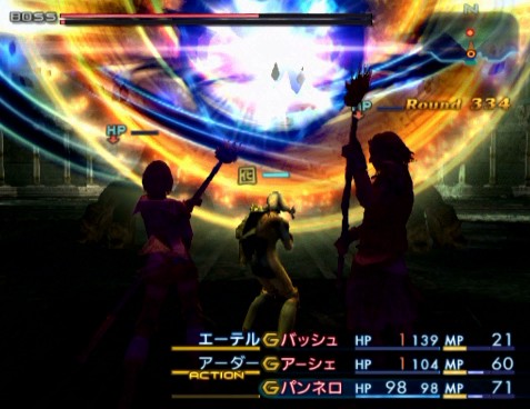 そんなこんなで、後はこの戦法を実行するのみとなった。最後の問題は、バトルがあまりにも長いことである。しかもその内容も、要するにひたすら虚空に向けて斧を振る3人を見守り続けるという心に来るバトルである。もちろん、全員が戦闘不能になったらリザーブを使って蘇生させなければならず、通常のリーダー死亡時の戦闘停止も起こるため、テレビの前から目を離すこともできない。・・・そんな感じで、倒すのにはなんと5時間もの時間が掛かってしまった。反則技に近いような手を解禁し、しかもここまで労力が掛かってしまっては、さすがにやりきれないという感じである。