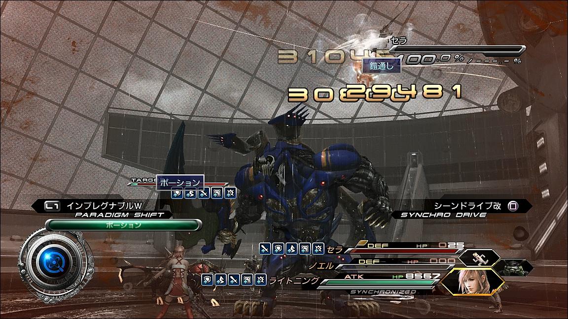 ――なお、このエピソードでのライトニングには成長要素があり、Lv.0〜Lv.10の全11段階の強さで敵と戦うことができる。そして、一応は初期状態のLv.0でも「鎧ライトニング」の入手は可能なようだが、ネットの動画を見てみるとどうやら20分以上掛かるらしい。というかそもそもこれはクリスタリウムではないため、普通にLv.9まで上げて鎧ライトニングのパラメーター厳選を行っていった。ま、これはさすがに、ね…。