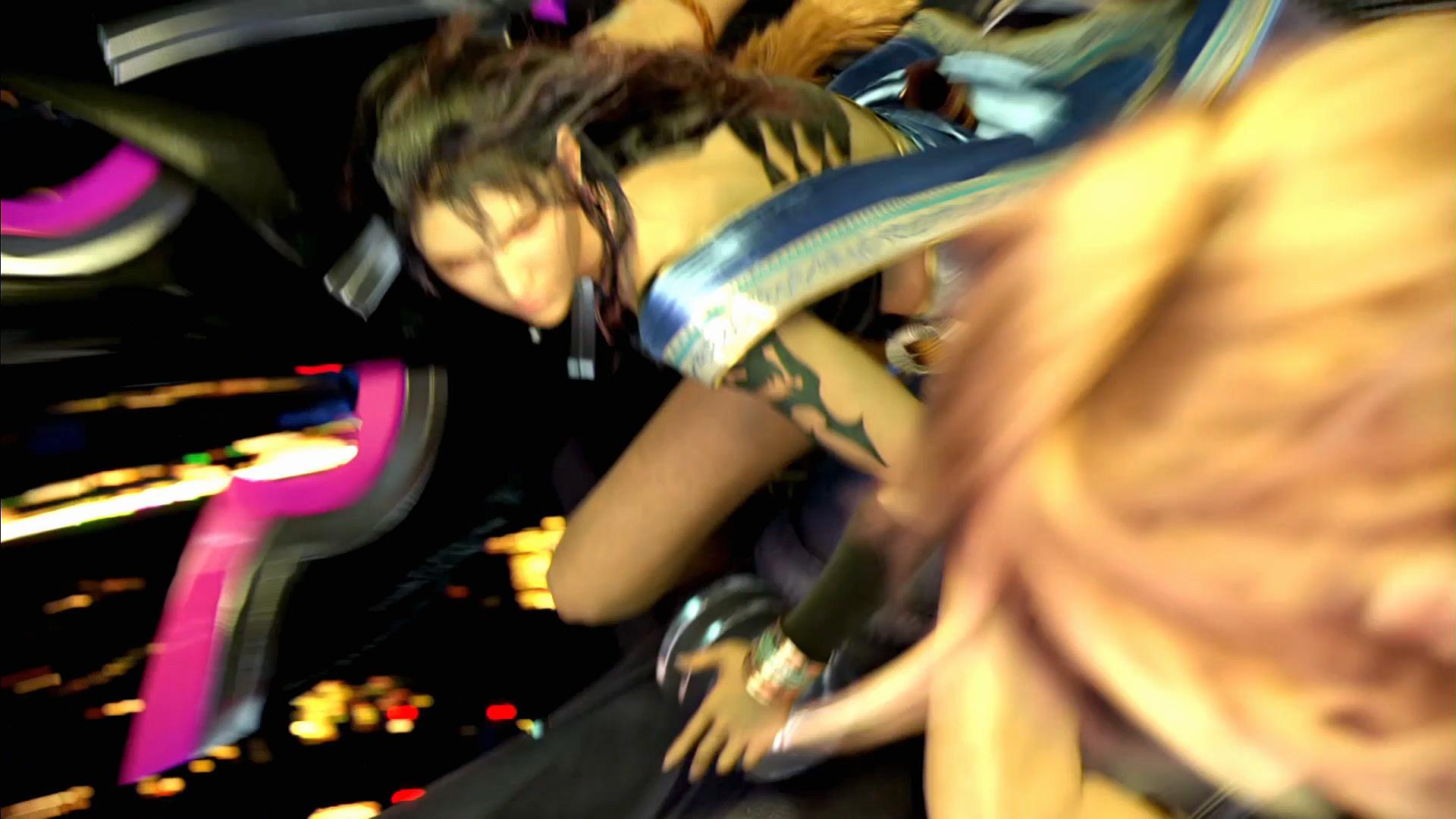 ――やれ。FFのムービーと言うと、単純な画質が美しいのはよく知られているが、それだけではなく、「キャラと背景」「静と動」「手前と奥」のように、登場する要素の関係性がハッキリ付けられており、自然に見られるよう制作されている。その観点で、私が13シリーズのムービーで最高傑作だと思う「リターンズ」のエンディング(【YouTube】)を見てみたところ、激しい動きの次にはキャラの顔を写して止めるなど、気付きにくいが見やすさ重視で作られており、それで初めて気持ち良くムービーを視聴できるということがよく分かった。他の13シリーズのムービーも、派手さを保ちつつも、実際には、見やすいように作られていることがほとんどである(例:【7章中盤の広場でのシヴァ参戦シーン】)。そんな中で、この12章冒頭のムービーは、大量の要素が喧嘩をしており、悪い意味で異彩を放ってしまっている。そういう理由で、私はこの12章のムービーを好きになれないのかもしれない。