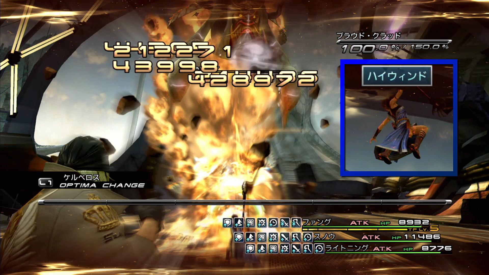 ――そして、最後である。「ATK+ATK+ATK」に変え、スノウとライトニングが「ルイン」を撃ちつつ、ファングが「ハイウィンド」を使う。際どいところであるが、絶妙なところで火力が足りてくれて、合計5セットの行動で撃破可能なのだ。
