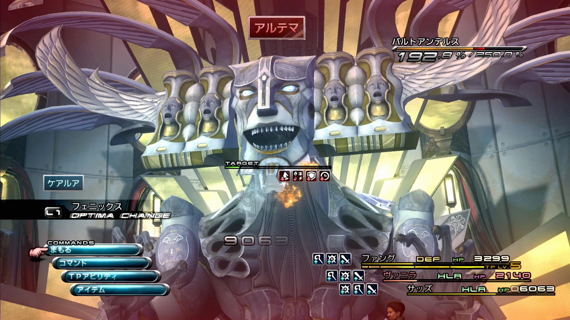 ――まあ、確かに、こいつはバトル的にはラスボスであるオーファン(第1形態)戦の前座だし、物語的にも明らかにオーファンの前置きと言える。しかし、だからと言って、バルトアンデルス2回目の完全使い回しというのはどうなのだろうか。そりゃあ確かに、ラスボス3連戦は、2戦目と3戦目が特徴的なバトルだから、1戦目まで中身たっぷりにしてしまっては、クドく感じるかもしれない。しかしながら、1回目が黒・2回目が白だったのだから、3回目は金色とか、せめて色くらいは変えてほしかった。なんだろう、FF13も開発終盤で苦しかったのかな…。
