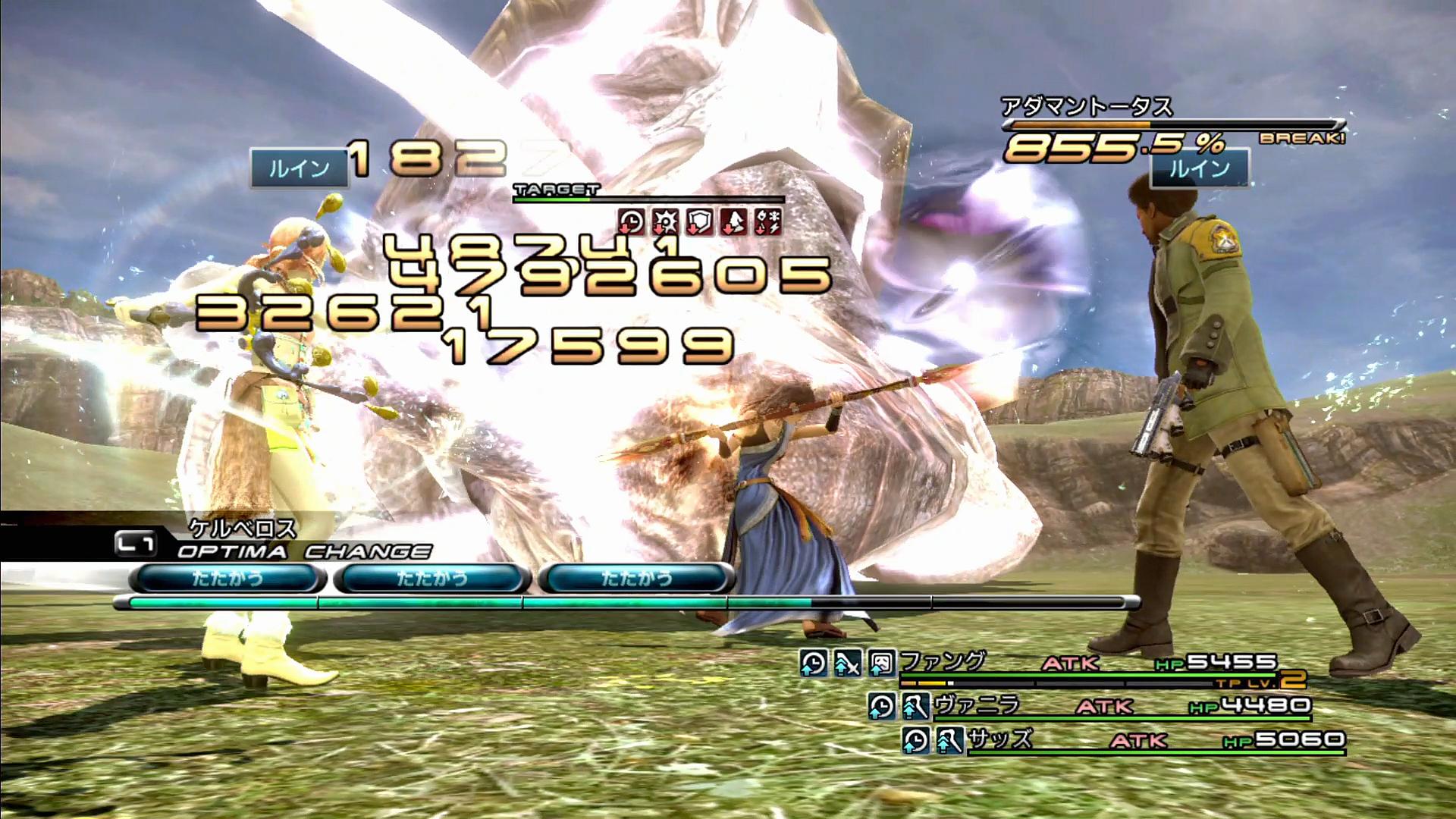 ――やれ、その戦いは、基本的には稼ぎプレイということで、安定性重視の単純作業である。しかしながら、「最強の武器を装備して○連打or放置」などと言った他ゲーの稼ぎとは一線を画し、様々なロールをフル活用する戦略性や、ブレイクして大ダメージを与えていく爽快感など、FF13の魅力が詰まっている。というわけで、この稼ぎ作業に奇妙な親密感を覚え、愛憎を込めて、本作が「亀狩りファンタジー13」などと呼ばれることもある。