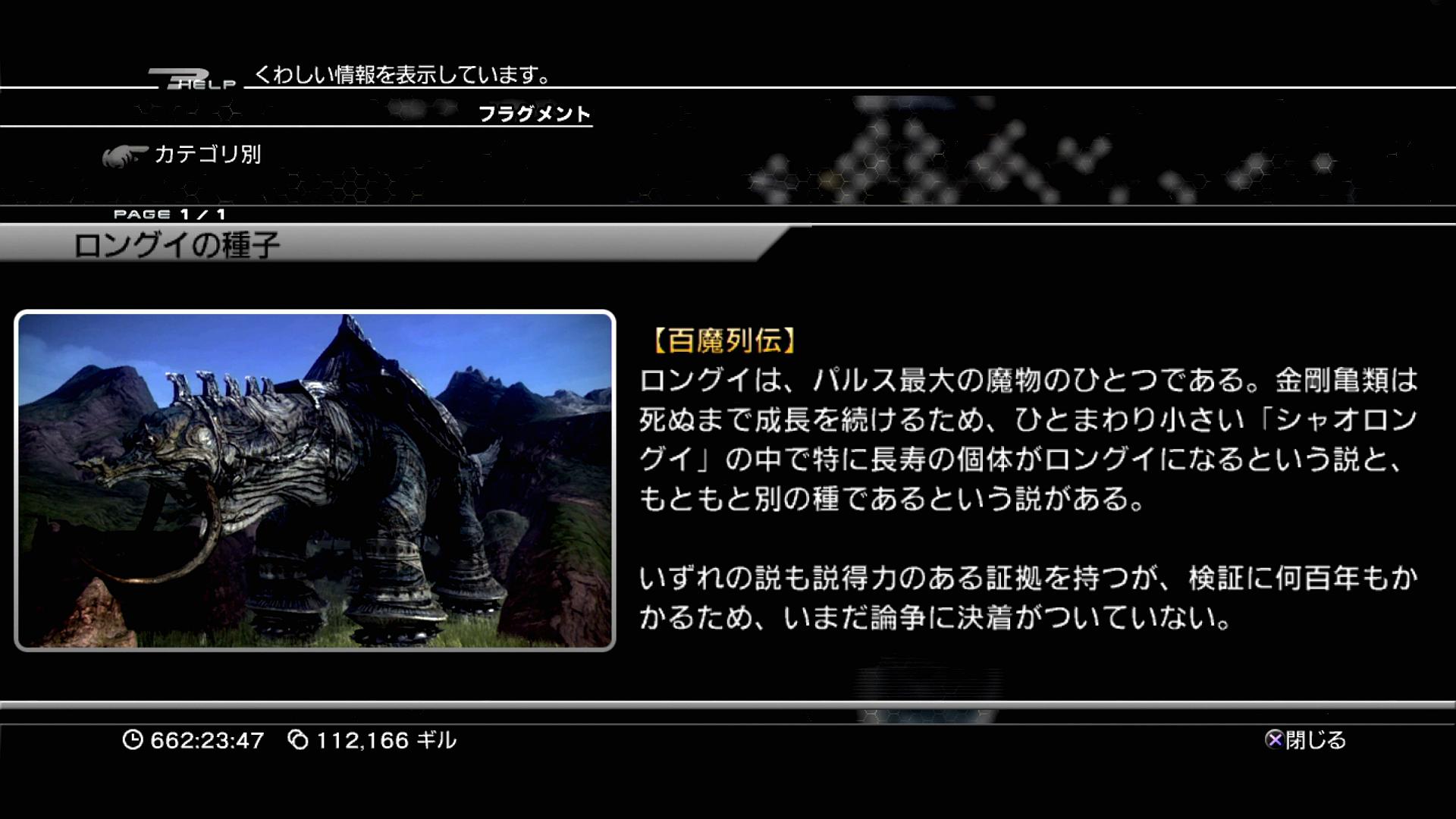 ――そして。この「ボス戦タイムアタック」の長すぎた戦いも、次がいよいよラストである。最終戦は、FF13最大の敵とされる「ロングイ」だ。恐らく、タイムアタックの対象として、最も多くのプレイヤーたちに挑まれてきたモンスターであろう。そのような、歴史が積み重なった相手を本プレイの締めとして取り扱えるのは、光栄なものである。さあ、ついに最後の戦いだ!