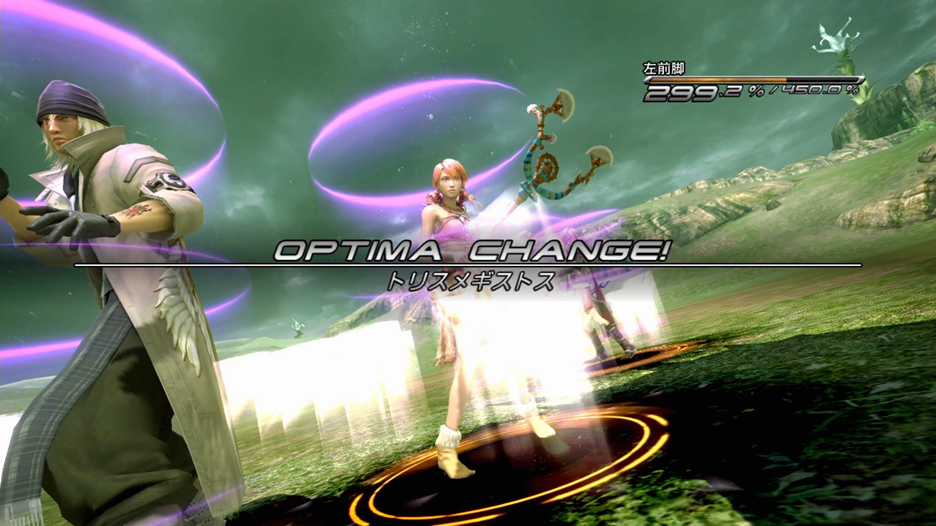 …のだが、ここでも注意しなければならない点がある。まず、このオプティマチェンジでは、12秒ルールが発動する。しかし、前述の通り、強化が終わるタイミング=オプティマチェンジの際に、ロングイの足踏みが飛んでくる。そして、ライトニングやスノウが、12秒ルールでの連続攻撃を入力した瞬間に足踏みでひるまされると、その後のコマンド入力が大幅に遅れてしまう場合があるのだ。よって、ここでは、連続攻撃が発動しないタイミングで、オプティマチェンジを行う必要がある。目安としては、スノウがヘイストで、しっかり腕を伸ばし終わった後に変更をすれば良いだろう。