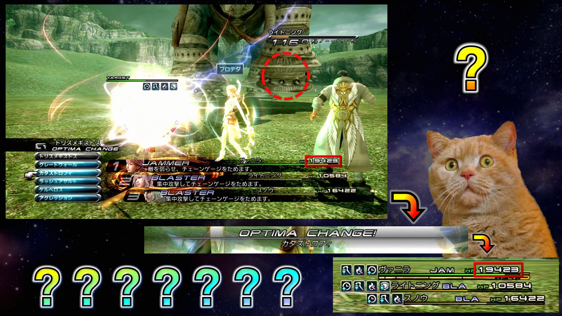 ただ。問題は、オプティマ枠が足りないということである。私の作戦では、6つのオプティマを全て使い切っており、「ヴァニラがATKで、かつ、ライトニングがJAM」というオプティマを用意する余裕は、もはや存在しない。