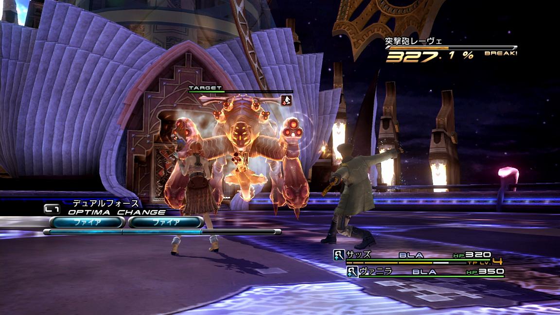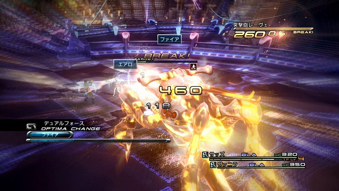 ――というわけで、以降はこの繰り返しである。気になるのは、「フェイス」と「デシェル」の掛け直しであるが、それらに関してはブレイク成功後に1回だけ自由に行動できる時間があるため、そのタイミングで使っても良いし、何なら安定性を求めて完全スルーしてしまっても良いだろう。また、他の注意点として、ブレイク終了直後にオプティマチェンジをする場合は、ヴァニラがしっかり「エアロ」を打ち終わったことを確認してから行うようにしたい。これに失敗すると、次のチェーンボーナスを溜め始めるパートで著しく行動開始が遅れ、最悪パターンが崩れてしまう危険性もあるからだ。